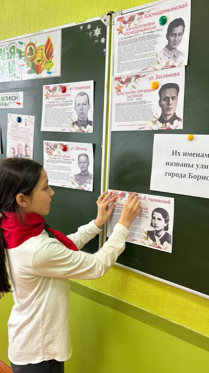 14 апреля 2026 в 5 классе состоялся классный час «Герои Великой Отечественной войны среди нас» в рамках программы «Я. Моя семья. Моя Родина». ⠀Обучающиеся отправились в виртуальное путешествие по улицам родного гБорисова. ⠀Но на этот раз они рассматривали названия улиц через призму истории и героических поступков. ⠀ На занятии ребята: ⠀Узнали, в честь каких героев-земляков получили свои названия улицы города. ⠀Изучили биографии Героев Советского Союза и их боевой путь. ⠀Обсудили важность сохранения памяти о людях, которые отважно сражались за мирное будущее нашей страны. ⠀ Каждый молодой гражданин должен знать историю своей малой родины и уважать тех, кто подарил нам мир. ⠀Мы гордимся нашими героями! ⠀