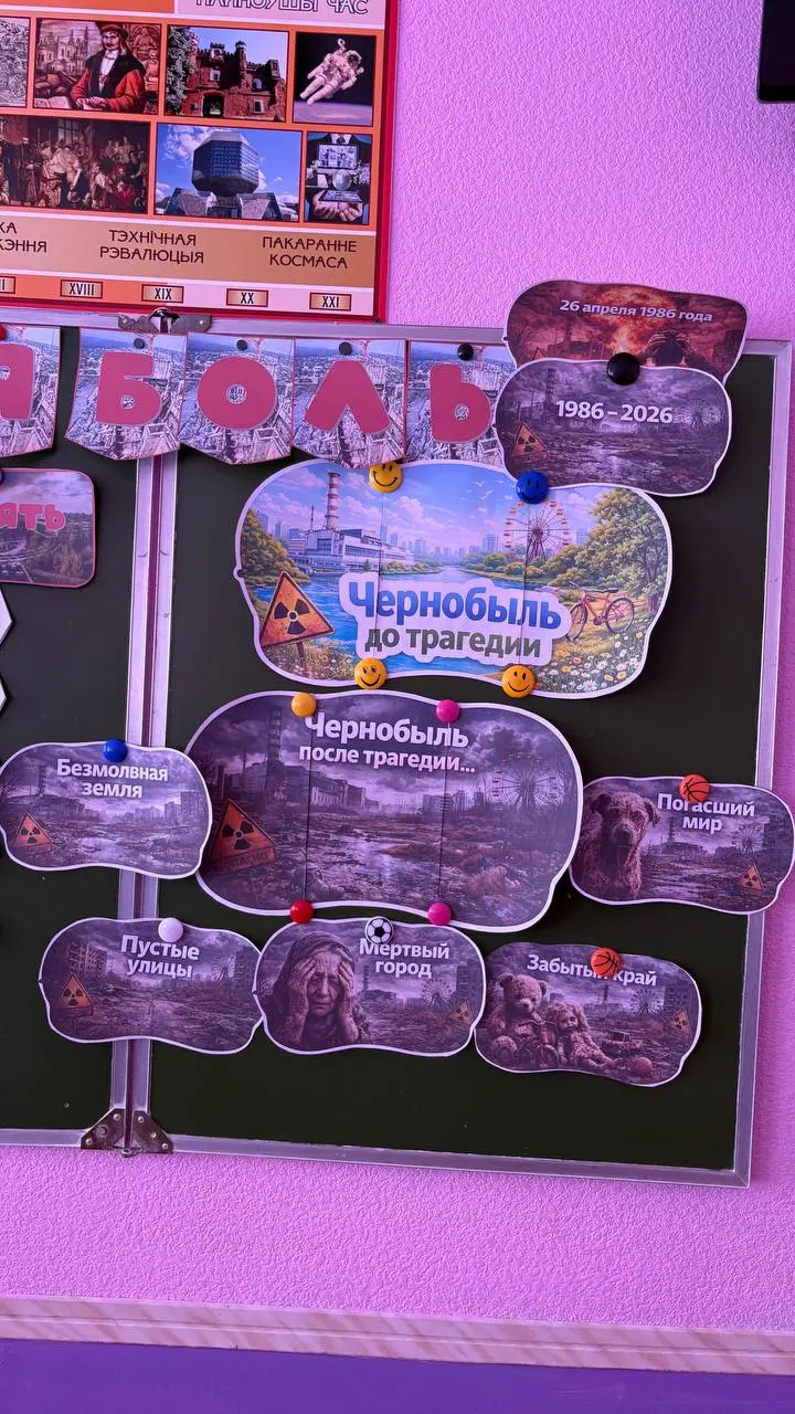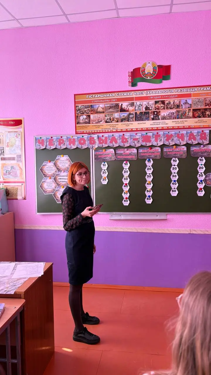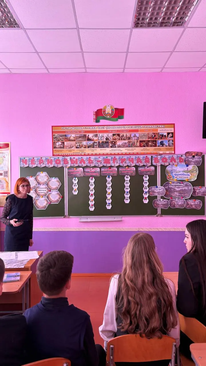 В рамках республиканской декады общественно-патриотических дел "Чернобыль: события, судьбы, память", посвященной 40 летию катастрофы на Чернобыльской АЭС 22.04. 2026 для учащихся 6 - 11 классов учреждения образования было проведено мероприятие "Чернобыль- жгучая боль", которое способствовало формированию у подрастающего поколения исторической памяти,гражданской ответственности и траэкологического сознания через осмысление масштабов Чернобыльской катастрофы, трансляции примера героизма ликвидаторов и демонстрации феномена возрождения на пострадавших территориях и роли государства в решении комплексной задачи по реабилитации и возрождению пострадавших территории.