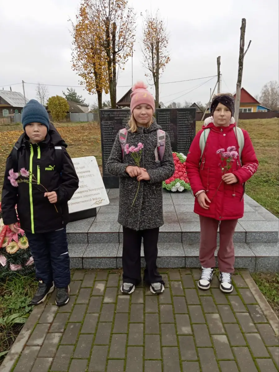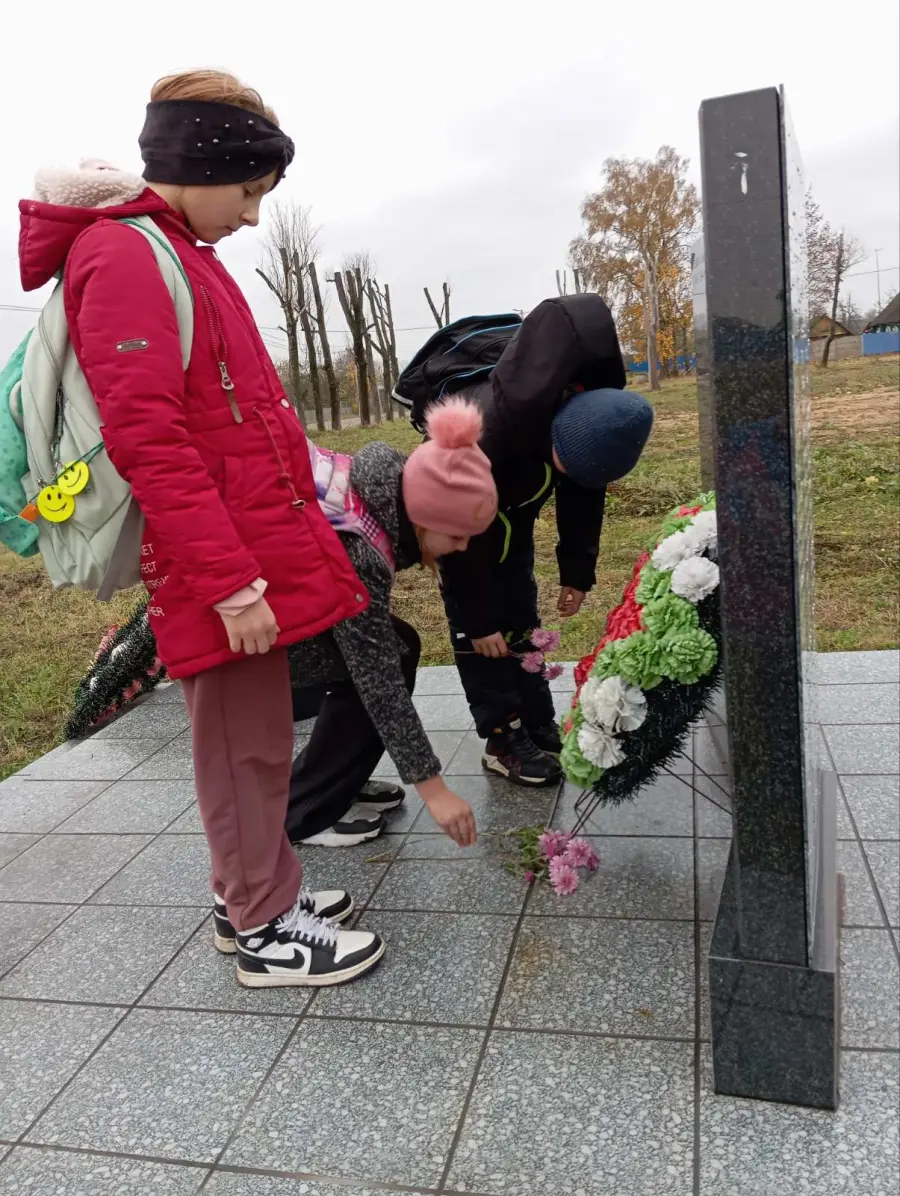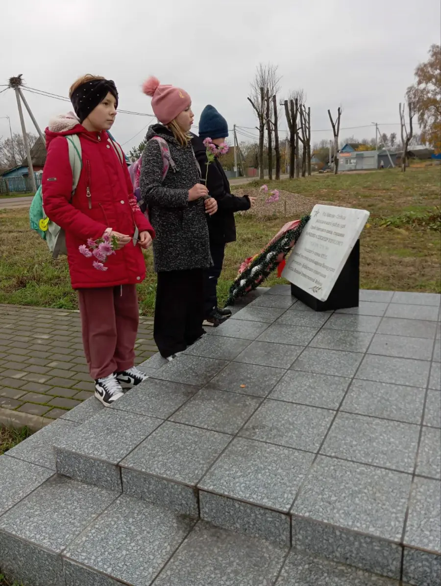 Дети возложили к подножию памятника цветы и почтили память земляков минутой молчания.