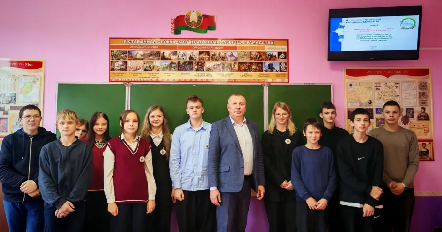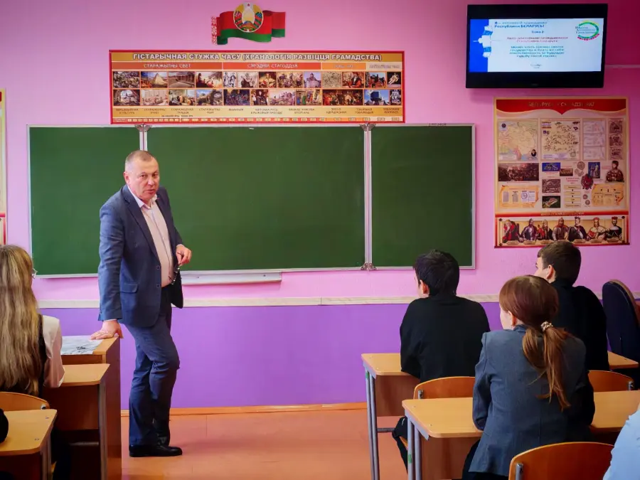 Быть достойным гражданином Республики Беларусь – значит чтить законы своего государства и брать на себя ответственность за будущую судьбу своей страны. ГУО"Кищино-Слободской средней школе Борисовского района" состоялось мероприятие, посвящённое важности гражданской ответственности и уважения к законам Республики Беларусь. В рамках мероприятия выступил директор ГУО"Кищино-Слободской средней школы Борисовского района" Азаренко Валентин Валентинович, который обратился к участникам с важным и вдохновляющим словом.